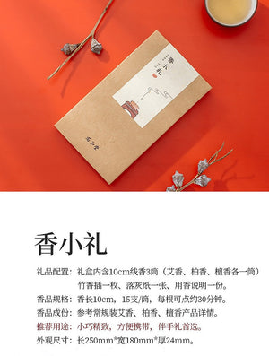 1. La confezione regalo contiene 3 tubi di incenso contenente 15 bastoncini / a tubo. L'incenso è lungo 10 cm , il tempo di combustione è di circa 30 minuti / a radice (1 tubo Assenzio艾、Cipresso 柏 e Sandalo檀 )