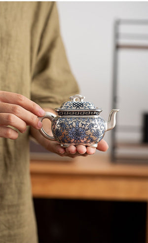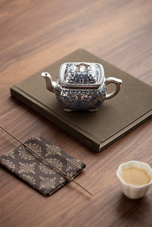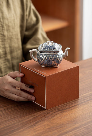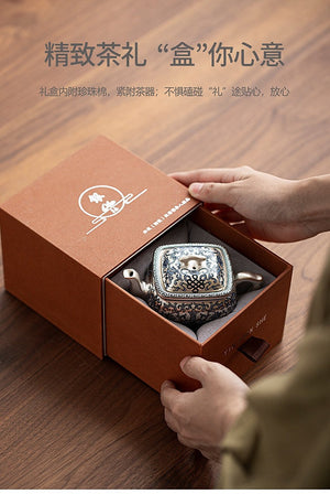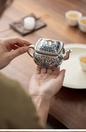 Questa teiera è un vero capolavoro di artigianato, realizzata in argento dorato e smalto cinese fatto a mano. Con il suo design piccolo e quadrato, aggiungerà un tocco di eleganza e raffinatezza al vostro servizio da tè. Il modello retrò e lussuoso la rende non solo una teiera funzionale, ma anche un'opera d'arte da esibire nella vostra casa. Dotata di un pulsante di copertura a ponte tridimensionale ed elegante, questa teiera è comoda da tenere e non facile da bruciarsi. Provate l'esperienza di preparare e gustare il tè con questa teiera unica, che racchiude secoli di tradizione e artigianato raffinato.