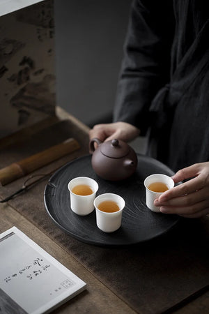Teiera in terracotta viola con 3 tazze porcellana bianca